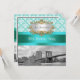 Brooklyn Bridge Turquoise Wht Damask Birthday Invitation