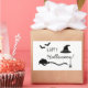 Destei's original simple Halloween silhouette design featuring a witch's hat, a broom, two bats and spider together with text that reads: "Happy Halloween!". The colours of the design can be changed, if so wished.