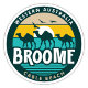 A bold, round vintage-inspired design celebrating Broome, Cable Beach, Western Australia. This round artwork features a striking silhouette of 3 camels with a golden sunset in the background.