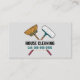 A business card for professional house cleaning services, featuring an illustration of two brooms. It comes with text, phone number and three stars. On the back there are a list of services with full contact! Perfect for activities such as house cleaning, janitorial, maid, etc.