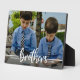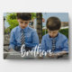 Modern photo plaque featuring single photo inside white frame and typography script ''brothers'' in trendy handwritten lettering. Personalise further with names.