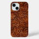 Brown 3-D tooled leather floral pattern 2 monogram Case-Mate iPhone Case