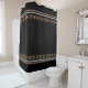 This shower curtain has a contemporary geometric design. Over laid on a black background, the design features black and brown squares and diamonds. The background colour can be customised.