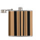 A simple abstract pattern of brown, black and tan vertical stripes creates an elegant, sophisticated hip flask.
