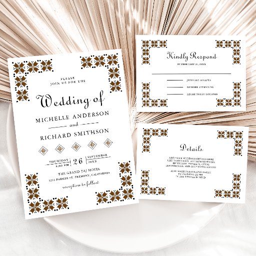 Brown and Black Ukrainian Embroidery Wedding Invitation