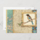 Brown and Blue Bird on a Branch Looking Up Postcard