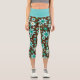 Brown and Blue Retro Mod Flowers Capri Leggings
