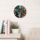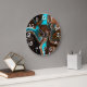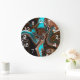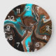 Brown and Blue Teal Marble Fluid Art Large Clock
