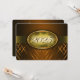Brown and gold graduation invitation with light and dark brown stripes and a gold ribbon going across showing the year of graduation. The back of the card is brown with light gold font for people to fill in the graduation announcements.