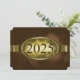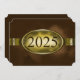 Floral designs surrounding button on top of a golden ribbon that has floral designs. Brown cloudy background. The back of the card has a brown background with gold lettering for the graduation announcements.