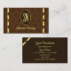 YOUR FAVORITE - Make a lasting impression with this elegant and luxury business card design featuring shimmery golden decor borders and oval frame. On the front matching monogram pattern on a brown background and the back is dark brown.
