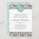Brown and Mint Zebra Pattern Monogram Invitation