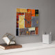 Wall clock with colourful photo of brown and orange tiles on a wall.