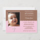 Beautiful pink and chocolate brown baptism invitations for your baby's special day.