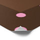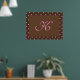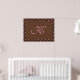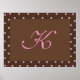 This print is in chocolate browns and pink; a dark chocolate brown border with pink polka dots, and a pink customisable monogram in the centre.