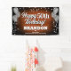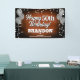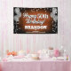 Fun banner sign for indoors or out, featuring festive silver metallic balloons on both sides of the design with sparkly, silver metallic confetti on a rich textured chocolate brown background for your personalised birthday banner. This product doubles as a wonderful milestone birthday keepsake.