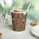 Brown hot cup with coffee brown background and white coffee-themed icons. Celebrate the coffee lover in your life with these perfect cups.