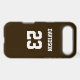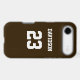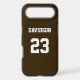 Add a name and number(s) to personalise this custom brown and white sports jersey inspired phone case. It is an excellent gift for a sports fan or athlete. The options to change the colour and font sizes are available.