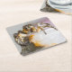 Brown and White Jumping Spider on White Rock Square Paper Coaster