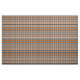 This fabric has a geometric design of a plaid with brown and white lines on a black background.