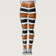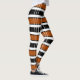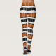 These leggings have a geometric design of a plaid with brown and white lines on a black background.
