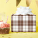A wrapping paper designed with a brown and white plaid pattern. Customise the white background among other options.
