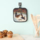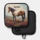 A pinto pony on a misty moor, in the style of George Stubbs, creates a pot holder that's perfect for anyone who loves horses and ponies.