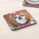 Dressed up Brown and White Shih Tzu Puppy Dog with a bow Coaster