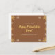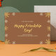 Celebrate the joy of friendship with this beautiful Friendship Day postcard. Featuring a warm brown background adorned with playful yellow and beige starburst graphics, this postcard is designed to convey heartfelt emotions. The front message expresses gratitude and appreciation for your dear best friend, making it a perfect keepsake. Additionally, you can personalise the message on the back to add a special touch, making this card a memorable token of your friendship.