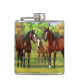 Brown Bay Quarter Horses In Summer Pasture Hip Flask