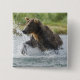 Brown Bear chasing salmon in river 15 Cm Square Badge