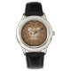 A cute watch for kids who are starting to learn the time . This one has the face of a light brown bear cub . The numbers for the hours are inside brown fake stitched hearts . Personalise it with the child's name .