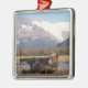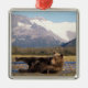 Brown bear, grizzly bear stretching on its back metal ornament