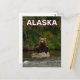Postcard of a brown bear sitting on a rock in Alaska.