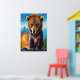 A brown bear in the forest with mountain and forest in the background. This is a AI generated art.