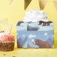 A beautiful painting of a cute brown bear walking in snowy mountains.