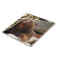 A close up photograph of a brown bear at the zoo printed on a ceramic tile.