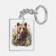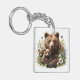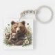 Brown Bear with Cubs in a Floral Meadow Key Ring