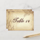 Vintage wedding table number postcard, featuring beige and brown scroll leaf. This elegant design is perfect for a fall or autumn wedding.