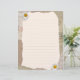 Beautiful vintage notes page in beige and brown colours, decorated with daisy blossoms and postage stamps in the background. Fill the lines with your own notes or any other text.