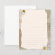 Beautiful vintage notes page in beige and brown colours, decorated with daisy blossoms and postage stamps in the background. Fill the lines with your own notes or any other text.