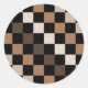 Brown Black Chequered Gingham Pattern Classic Round Sticker