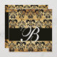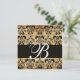 BROWN BLACK DAMASK PARCHMENT MONOGRAM , white Invitation