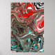 Brown, black, red and teal pour painting fluid art abstract modern art.