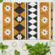 Elegant brown and black stripe flower pattern kitchen towel featuring stylish tropical blooms, whimsical botanical motifs, and retro spring summer charm for a sophisticated nature-inspired accent.