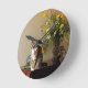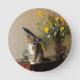 Brown black Tabby cat Sitting on piano flowers Round Clock