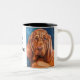 A one of the kind oil painting of the brown bloodhound on the dark blue background.