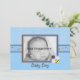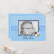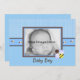 Introduce your little man with this sweet, all-boy birth announcement. A blue ribbon with brown trim, has a trail of cute, chubby bees. The top half of the background is a blue plaid/gingham, and the bottom is a textured blue. A brown and blue frame with a sweet bee sitting on the corner, is ready to hold the picture of your little one!