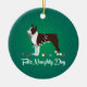 Brown Boston Terrier Feliz Naughty Dog Design Ceramic Ornament