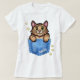 Brown Cat in Faux Denim Pocket with Custom Name T-Shirt